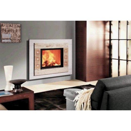 Этот необыкновенный пристенный камин в стиле минимализма выполнен из натурального камня травертина. Особенно привлекательным и по-домашнему уютным его делают цветные вставки на фасаде. Задняя панель камина выполнена из белого камня Bocciardata.