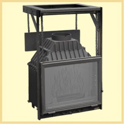 • подъемным механизмом дверцы, который плотно и бесшумно работает, надежно защищая пространство вокруг топки от углей и искр;